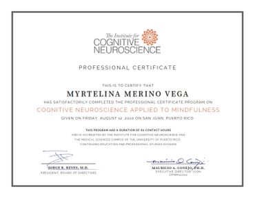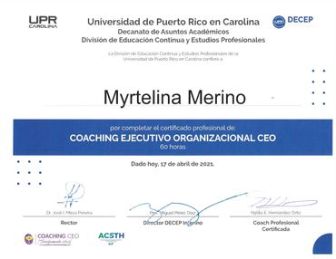 Hola, soy Myrtelina Merino, psicóloga, coach ejecutivo y organizacional, terapista de Reiki, practicante de Access Bars Consciousness ® y Mindfulness aplicado a la ciencia neurocognitiva.